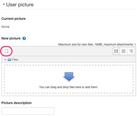 Browse for a file by clicking the file icon (highlighted), or drag and drop a picture into the box with the big blue arrow.