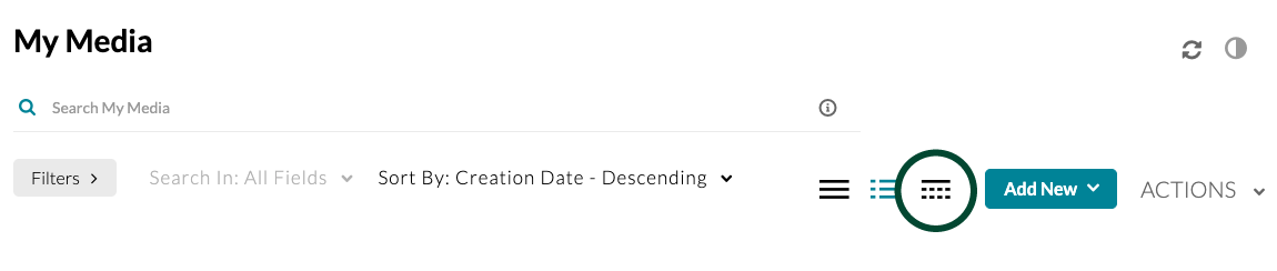 Inserting a Kaltura video into your H5P involves a step to build the URL for the video to include, or to download the video itself. To begin, you will need the Entry ID for the Kaltura video. This can be found in the Table View on your My Media page, displayed by clicking the third view option icon.