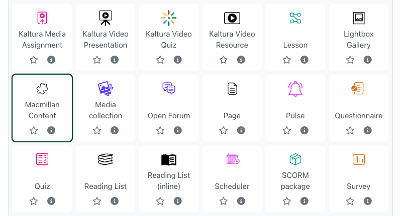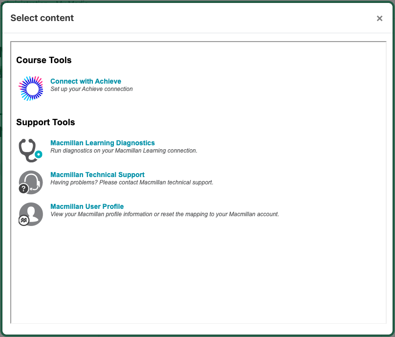 The Macmillan Content tool is a specific External Tool activity allowing students to interact with Macmillan Achieve activities.
