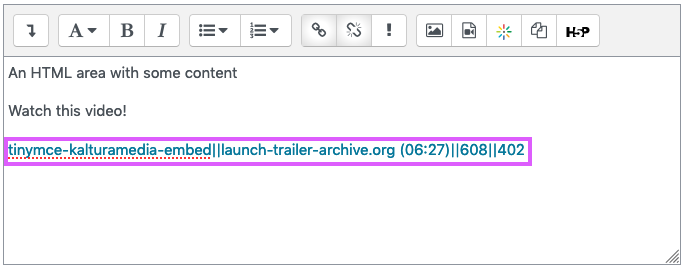 Embedding media elsewhere in the course is possible through the HTML editor toolbar. This allows for more advanced uses such as embedding media into forums and other areas of your course.